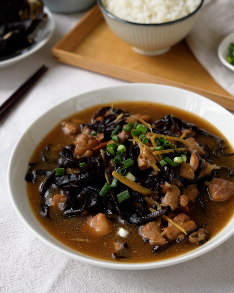 This Braised Chicken with Black Fungus is a simple Chinese dish that is savoury and fragrant, with a subtle tanginess from the black fungus. The chicken turns tender and juicy, while the black fungus adds a slightly crunchy, springy texture.