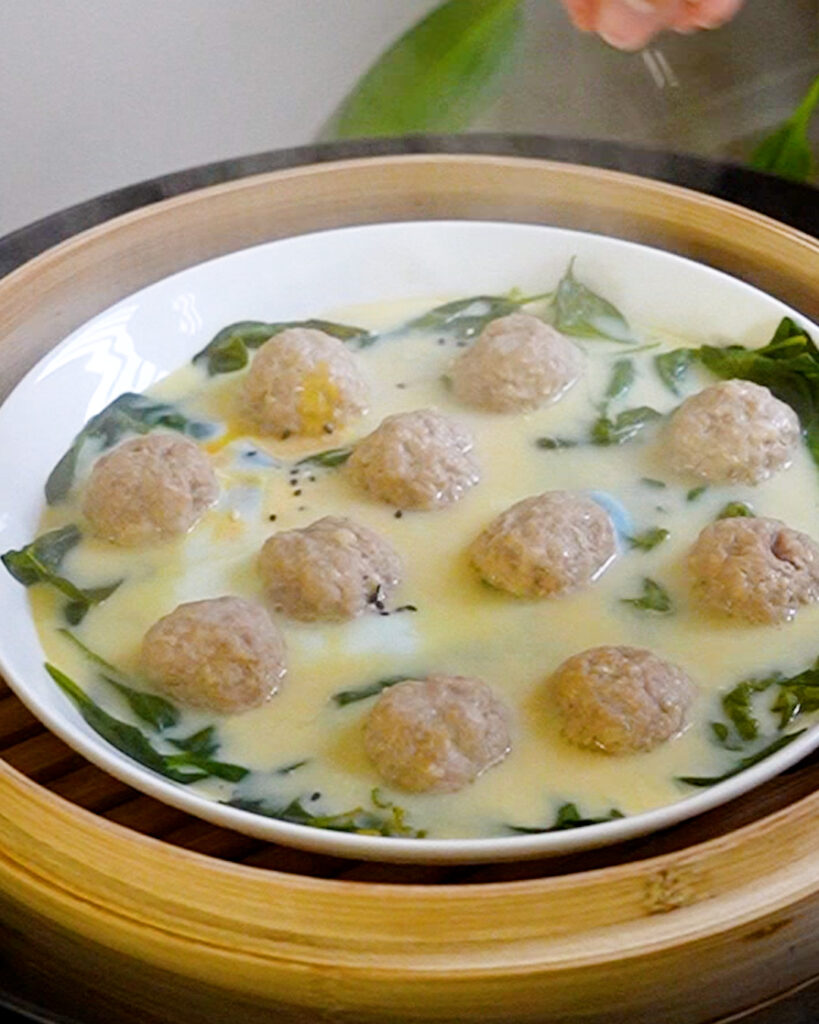 Steamed Meatballs with Spinach and Eggs Tutorial: